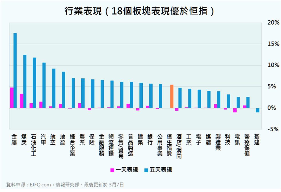 )均升逾3%,帶動煤炭板塊為表現第二佳。